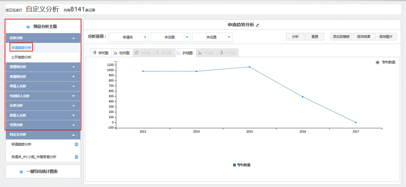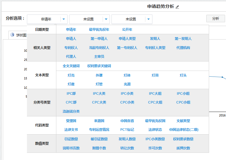 进入Inspiro自定义分析页面的时候分析选项默认设置为“申请年”