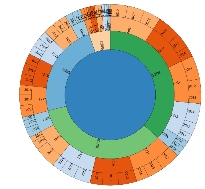 ③ 点击环形图中的每一个色块都可以对该区域进行展开。