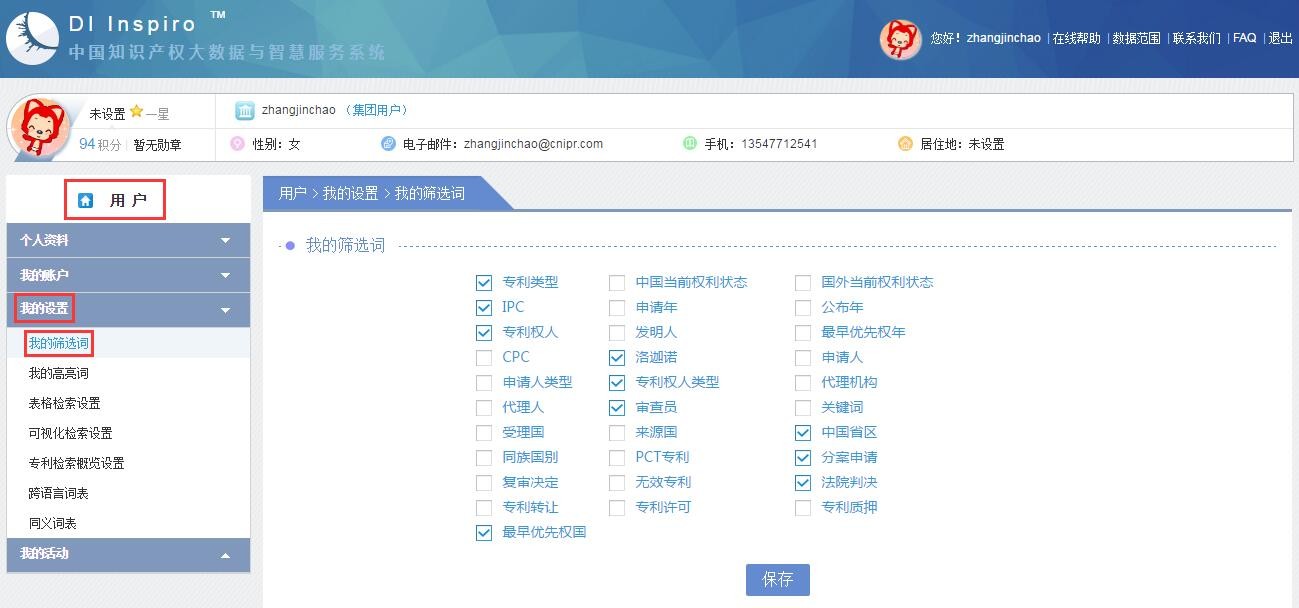 专利数据库的筛选词可在系统提供的31个词中勾选更换,最多不超过10个。