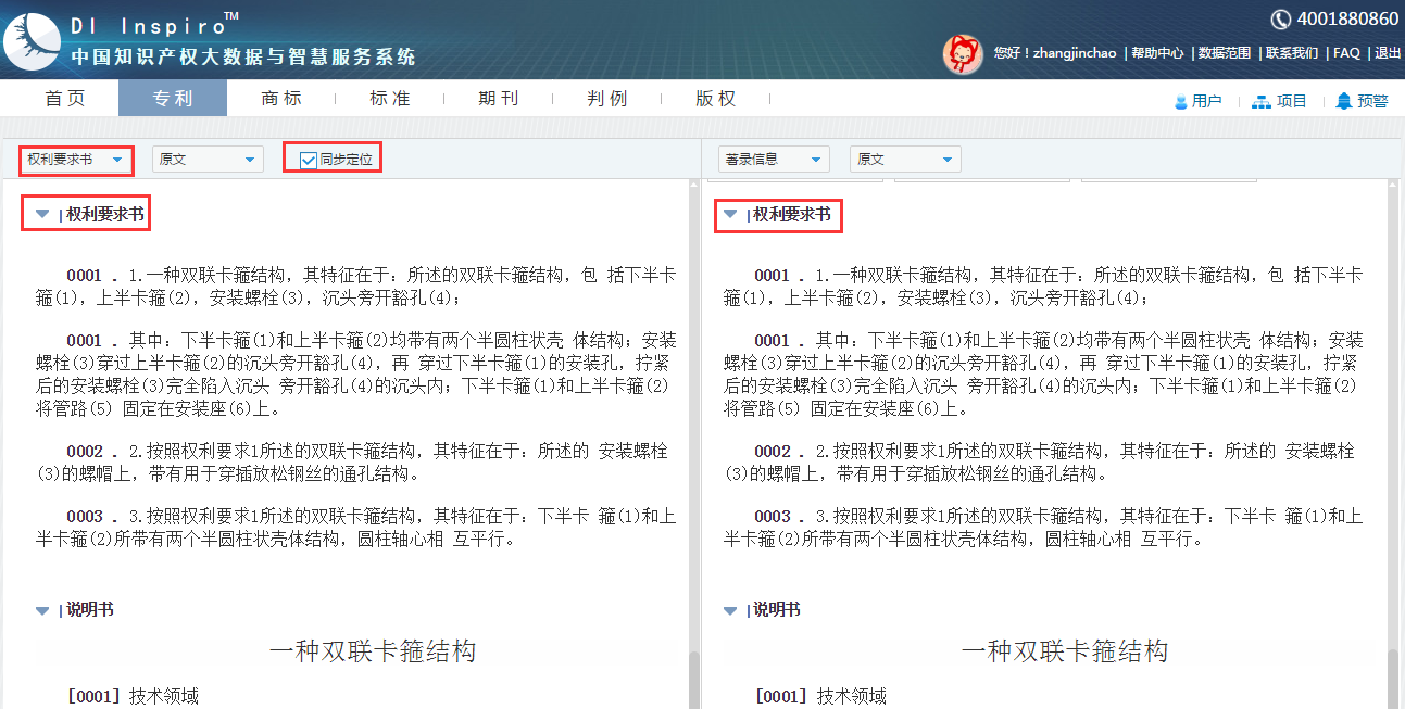 跳转至双栏浏览模式。以专利文献为例,用户可调整2个浏览窗口的滚动条使说明书及说明书附图置于显示区,方便理解附图标记的含义。