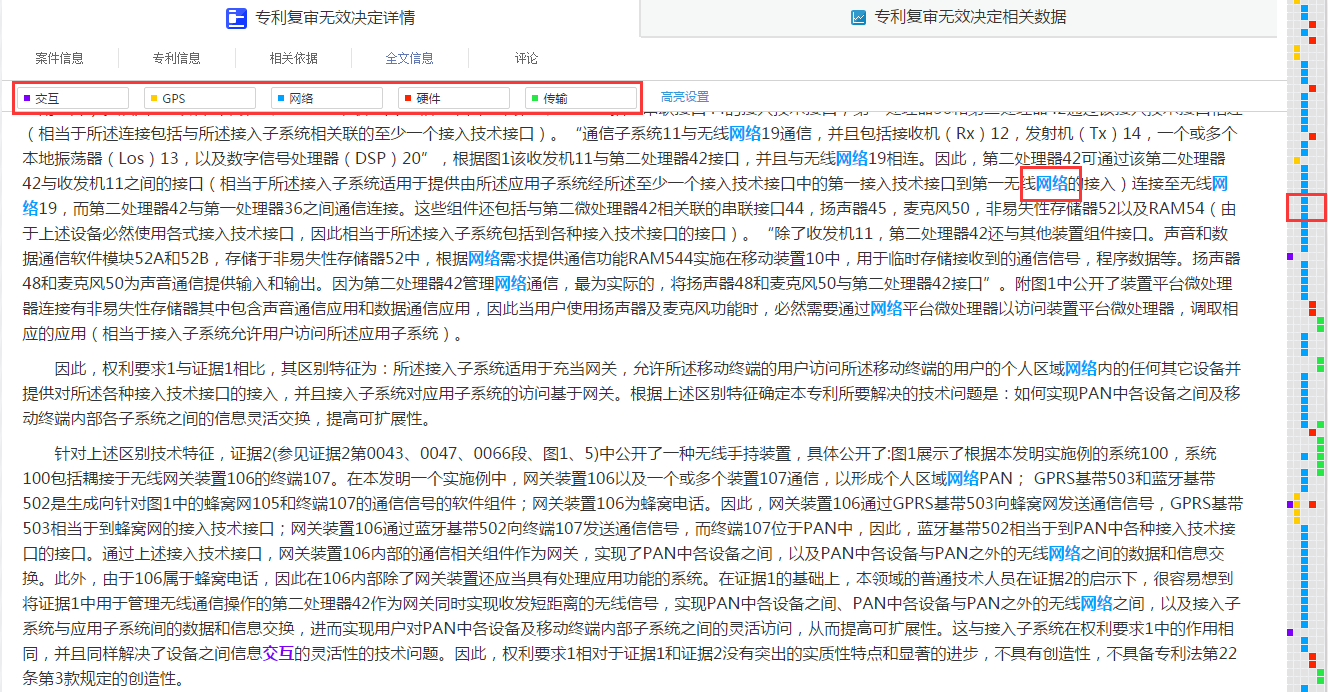,自定义关键词将以相应的颜色高亮显示,自定义关键词在页面中的分布情况可通过右侧的定位板查看,点击任意颜色网格,页面滑动至相应颜色的关键词处。