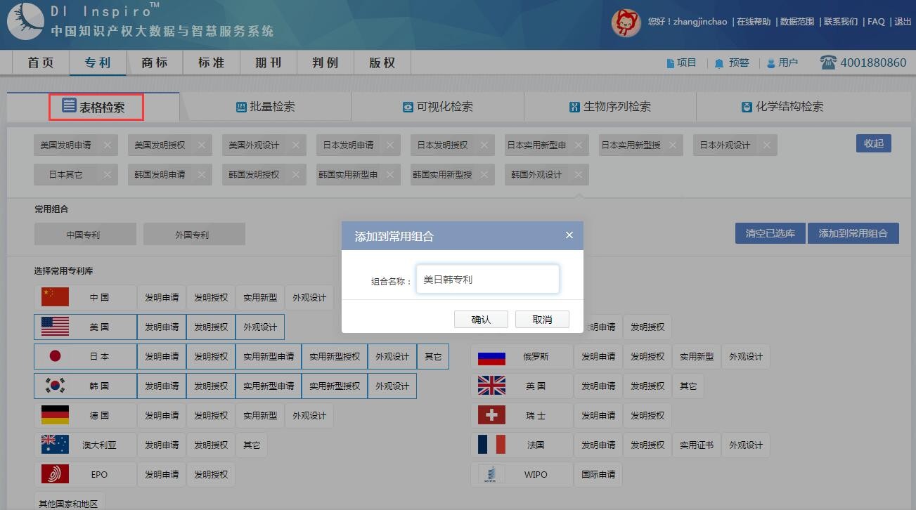 Inspiro预先设置有中国专利数据库和外国专利数据库,用户可根据检索需求设置其他常用数据库,在表格检索模式或“用户—我的设置—表格检索设置”中,选择数据库,点击