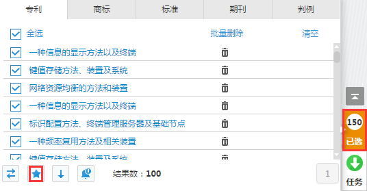 批量设置可通过将多件专利或商标加入已选,在“已选”项下再次勾选,点击