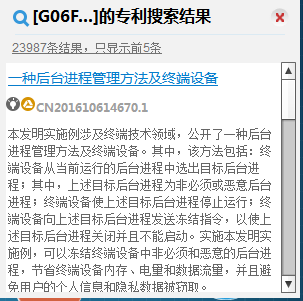 5)点击可视化联想显示框内任一关键词、申请人和IPC分类号,出现编辑按钮,可以对可视化联想内容进行编辑和查看,包括“删除”、“编辑”和“检索”,例如,点击“检索”按钮,在可视化显示框的右侧出现相应的检索结果,如图所示: