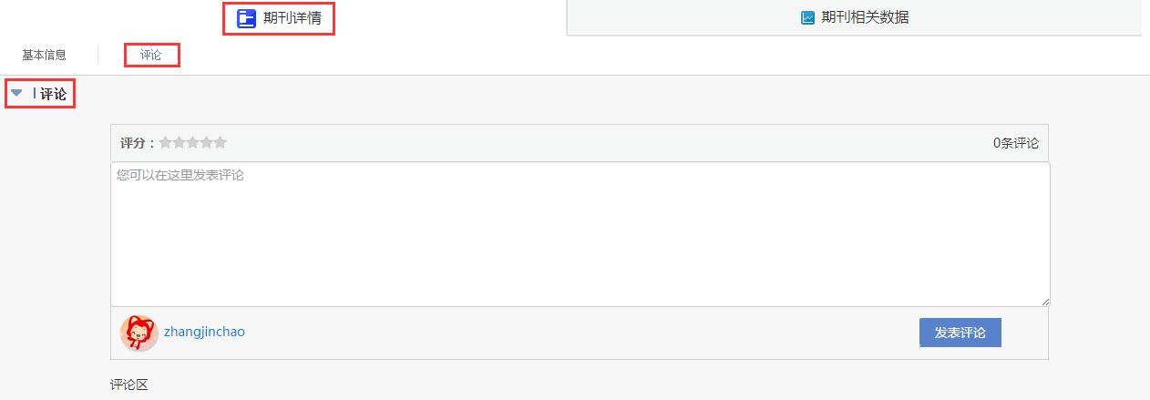 期刊详情页面提供文章的基本信息,除了在概览中展示的题录信息外,还包括文章DOI号、期刊ISSN号、国家、语种、核心收录情况、文献类型、分类号信息,用户还可对该文章发表评论。
