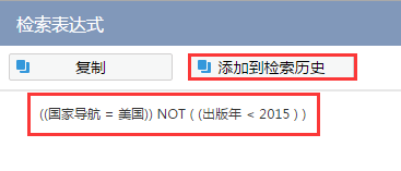 可查看检索表达式,对于符合要求的检索结果还可以将其添加到检索历史中保存记录。