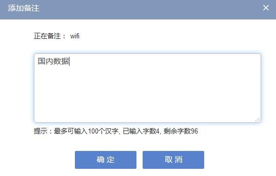 ,系统会弹出备注填写框,在空白的文本编辑区键入想要备注的信息文字,点击