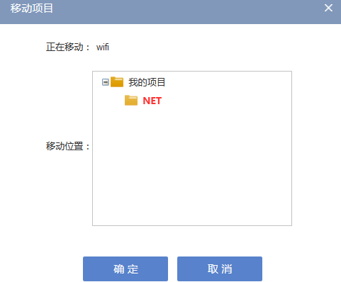 ,系统会弹出移动项目对话框,鼠标单击选择准备放置的项目夹,点击