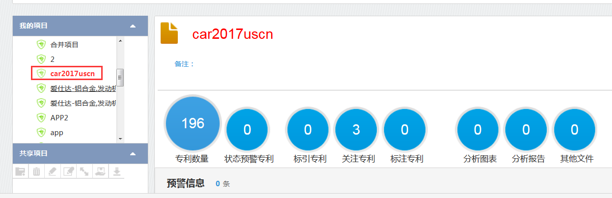 ① 点击左侧的文件目录树下的对应的专利项目文件名,进入专利项目的概览页面。