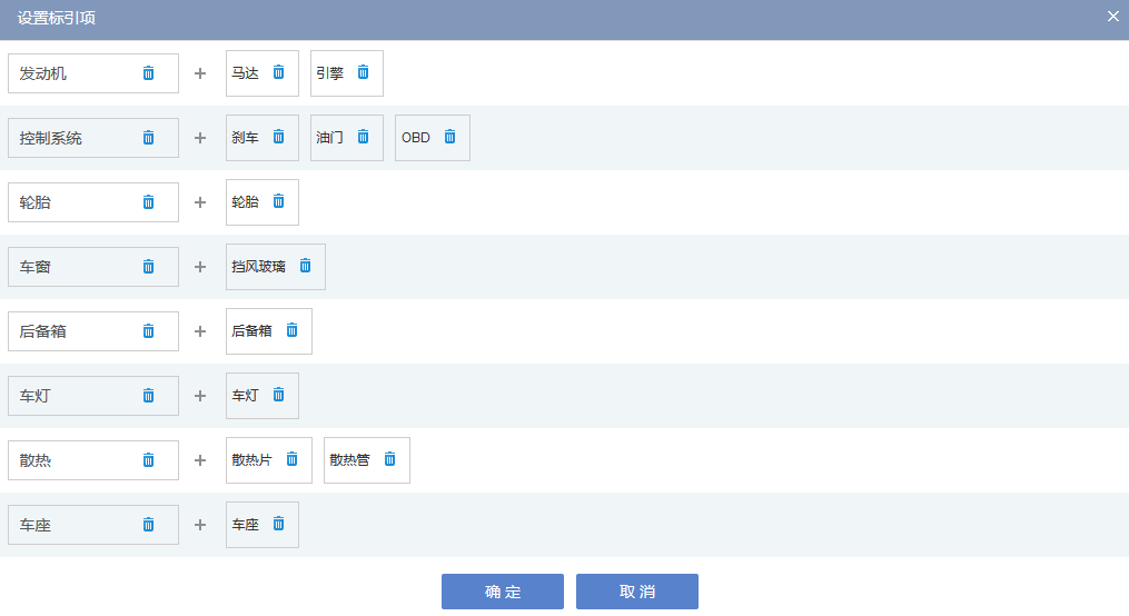 ③完成所有标引项和标引词的设置后,点击确定完成设置标引项的操作。