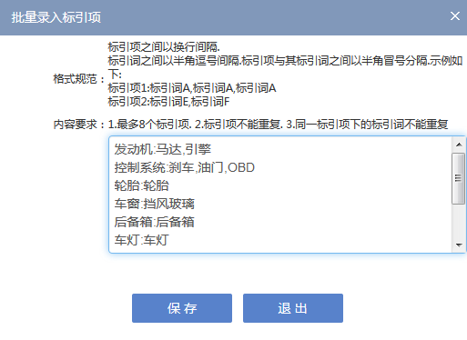 需要注意的是最多8个标引项,且标引项之间不能够重复,同一标引项下的标引词不能重复,具体示例如下图所示。