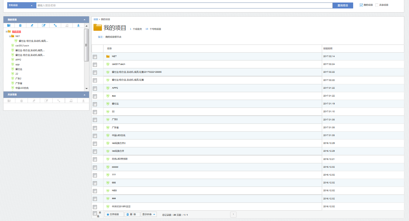 ②直接点击右侧的项目列表信息下对应的专利项目文件名,进入专利项目的概况页面。