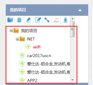 项目的基本操作按钮主要集中在了文件夹的目录树的上方,提供了针对项目夹或项目的新建、删除、备注、重命名、移动、项目共享(只针对集团用户)和项目导入操作等。