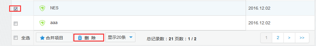 右侧是项目夹和项目的数量统计信息,下方是备注信息,最底部是项目列表信息的翻页按钮和合并、删除操作按钮。
