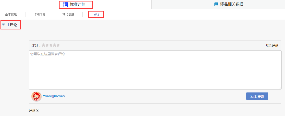 标准详情页面提供标准的基本信息、详细信息及其他信息,点击页面上部标准详情列表即可滑动至相应位置。用户还可对该标准发表评论。