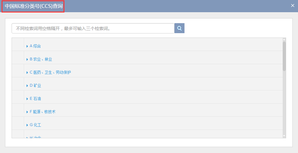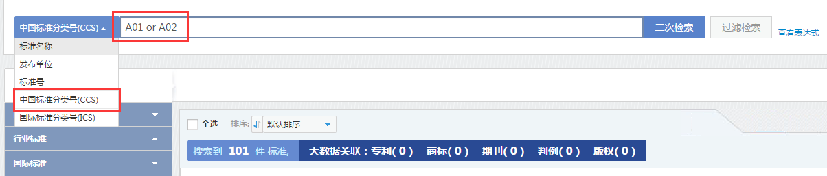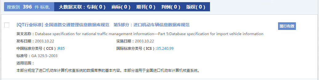 在该阅览模式下,点击标准名称可进入标准细览页面,点击中国标准分类号或国际标准分类号,系统将以检索表达式中国标准分类号CCS = 'R85' 、国际标准分类号ICS = '35.240.99'进行检索。
