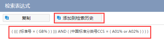 可查看检索表达式,对于符合要求的检索结果还可以将其添加到检索历史中保存记录。