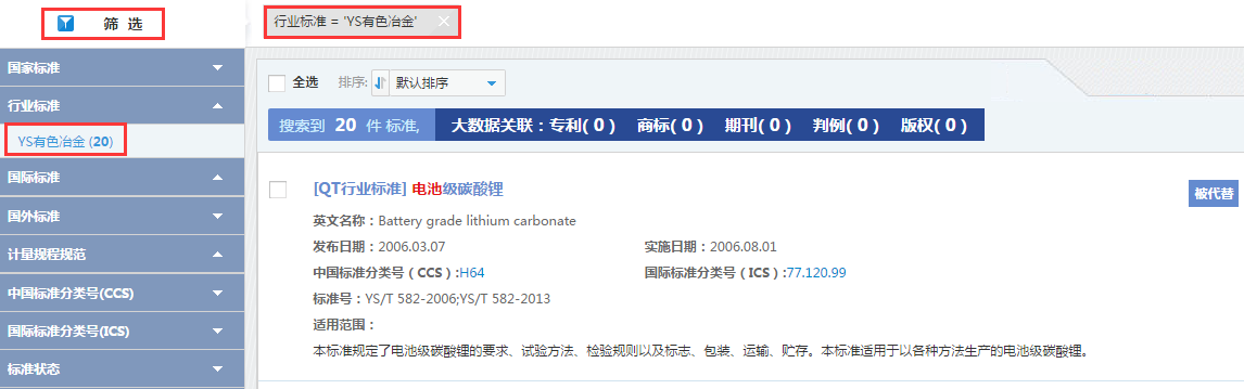 以行业标准“有色冶金”进行筛选的结果