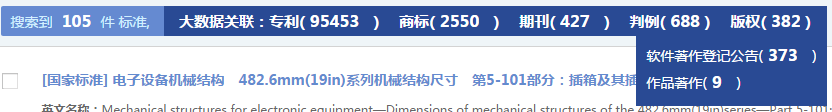 阅览区显示大数据关联信息及标准检索结果,大数据关联信息为系统以相应的检索表达式检索得出,点击具体数据可跳转至相应概览页面,点击