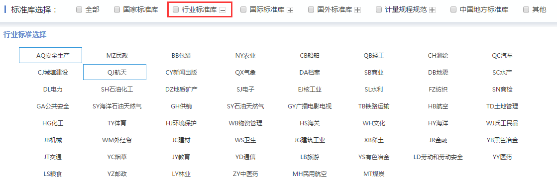 中国标准分为国家标准(GB)、行业标准、地方标准(DB)和企业标准(QB),技术要求的统一范围逐级缩小。Inspiro提供国家标准库、行业标准库及地方标准库,行业标准库覆盖安全生产、航天等60个行业,点击行业标准库右侧 ,可展开全部行业。