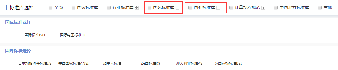 Inspiro收录的国际标准包括国际标准ISO和国际电工标准IEC,分别由国际标准化组织(ISO)、国际电工委员会(IEC)制定。国外标准包括日本规格协会标准(JIS)、美国国家标准(ANSI)、韩国标准(KS)、澳大利亚标准(AS)、英国标准(BSI)、加拿大标准(CSA),用户点击 ,可在展开的标准库中进行选择。