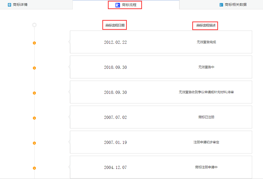 商标细览页面由3个页面构成,缺省页面为商标详情页面,点击